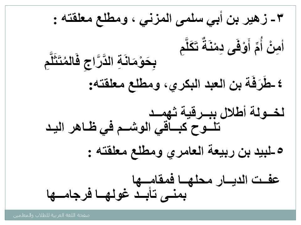 المعل قات العشر بنات القرن السادس الميلادي فكر وفن ثقافة البيان