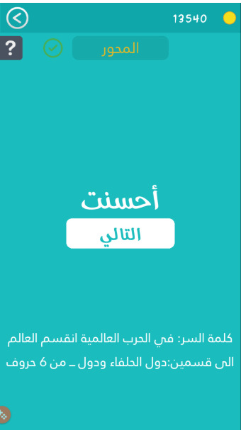 حل كلمه السر في الحرب العالميه انقسم العالم الى قسمين دول الحلفاء ودول ـــــ من 6 حروف من المجموعة 34 من لعبة كلمة السر 2 صقور الإبدآع