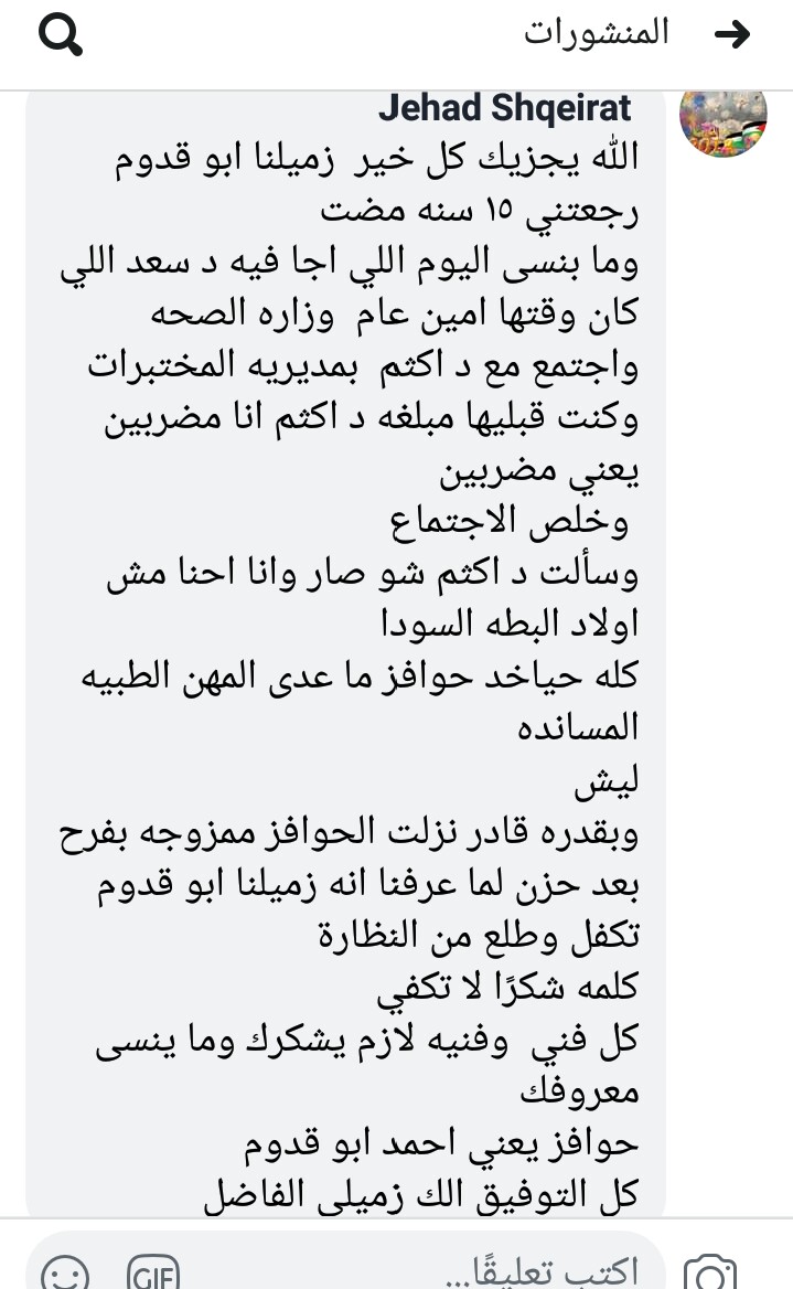 شهادة شكر وتقدير من وزارة الصحة