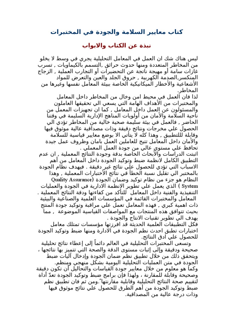 كتاب نظم الجودة في المختبرات Pdf