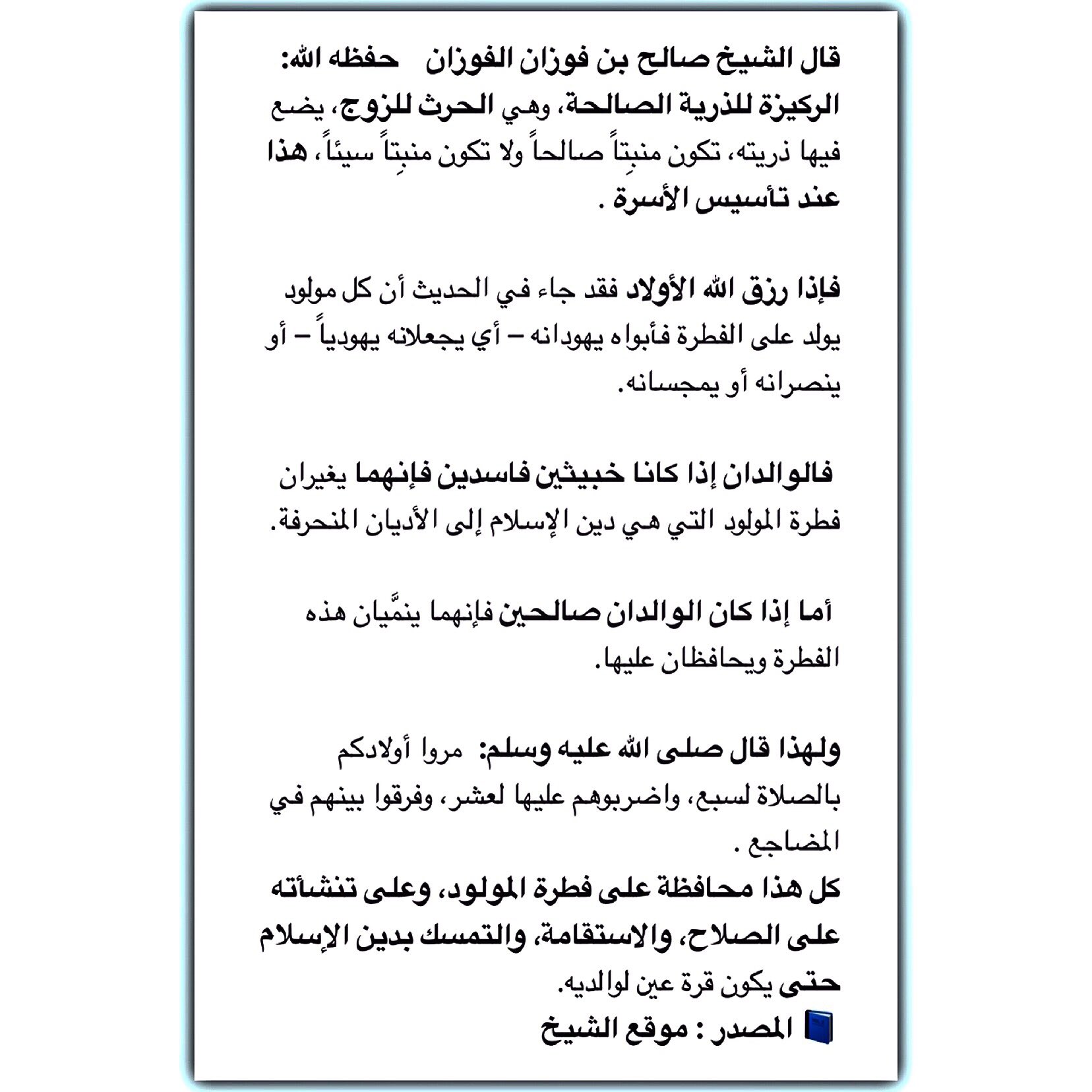 العلامة صالح الفوزان Di Twitter قال الشيخ صالح بن فوزان الفوزان حفظه الله الركيزة للذرية الصالحة وهي الحرث للزوج يضع فيها ذريته تكون منب تا صالحا ولا تكون منب تا سيئا هذا عند تأسيس
