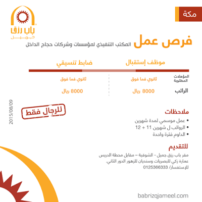 وظائف موسميه في مكة موظفي استقبال وضباط تنسيق رواتب 4000 ريال